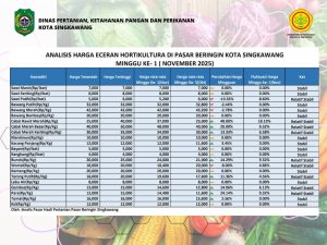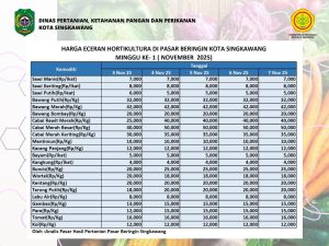 Berikut ini kami informasikan perkembangan data harga eceran hortikultura di Pasar Beringin minggu ke-1 bulan November 2025