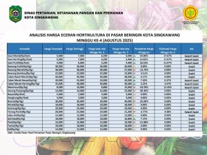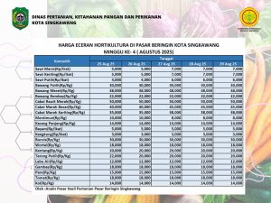 Berikut ini kami informasikan perkembangan data harga eceran hortikultura di Pasar Beringin minggu ke-4 bulan Agustus 2025